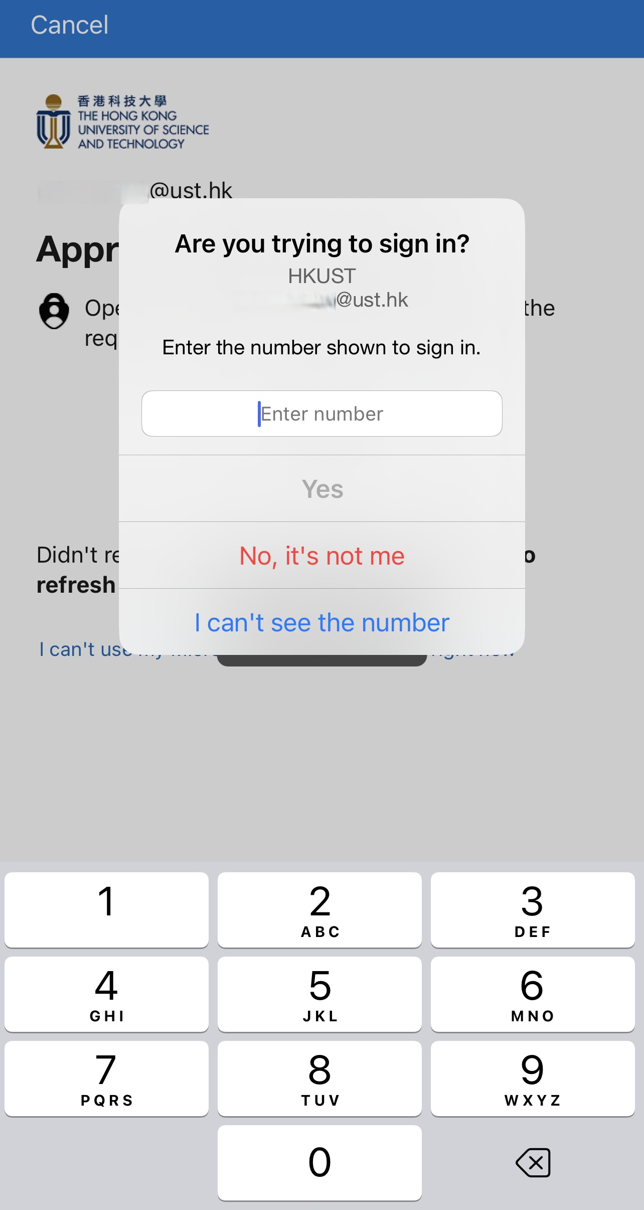 - Follow the instructions and enter the two-digit number via the Microsoft Authenticator app.
