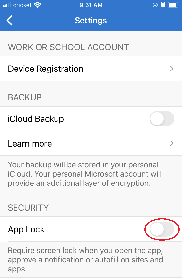 To disable app lock on the Microsoft Authenticator, follow these steps: