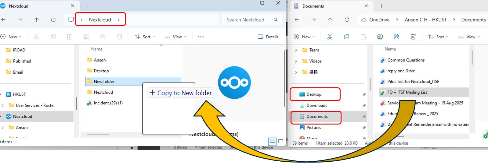 3. After that, please consider moving less-used files from your OneDrive (including your Desktop and Documents folders) and pasting to Nexcloud.
